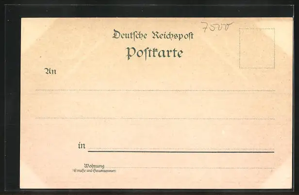 Personenbezogene Daten auf der Rückseite der Karte wurden durch blauen Textmarker unkenntlich gemacht. Die blauen Stellen sind auf die Vorderseite durchgeweicht und wirken sich negativ auf das Postkartenfoto aus