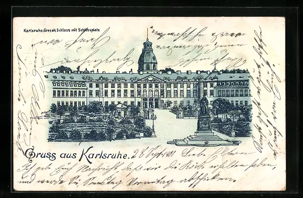 Lithographie Karlsruhe, Grossherzogliches Schloss mit Schlossplatz