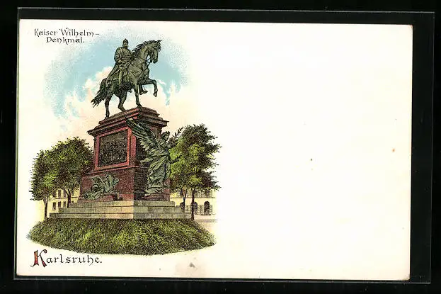 Lithographie Karlsruhe, Kaiser Wilhelm-Denkmal