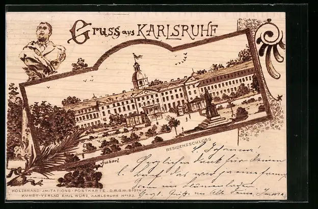 Lithographie Karlsruhe, Partie am Residenzschloss