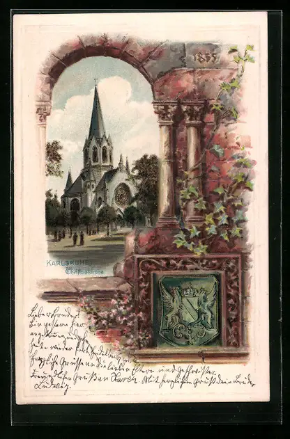 Lithographie Karlsruhe, Partie an der Christuskirche