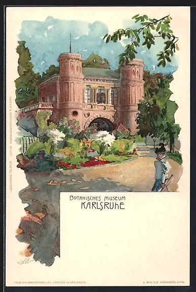Lithographie Karlsruhe, Partie aus dem Botanischen Garten