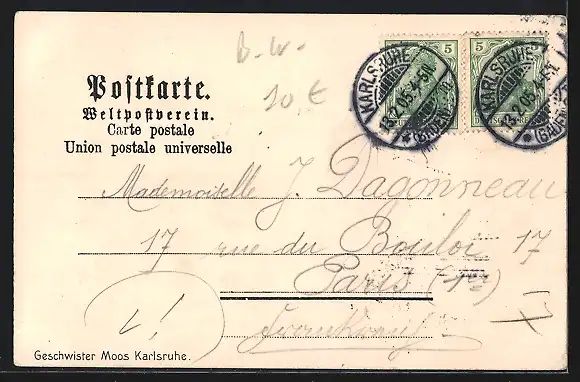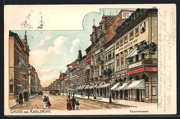 Lithographie Karlsruhe, Partie in der Kaiserstrasse