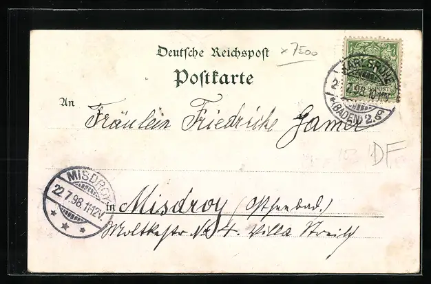 gelaufen 1898, minimaler Einriss li. mittig, guter Zustand