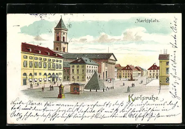 Lithographie Karlsruhe, Pyramide auf dem Marktplatz