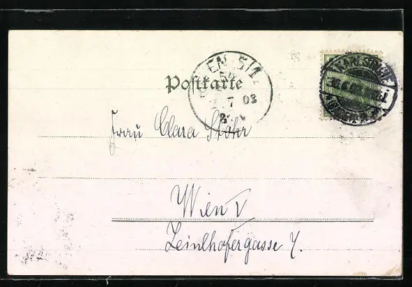 gelaufen 1903, Eckknick links unten, guter Zustand