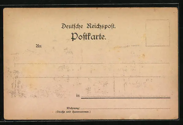 Personenbezogene Daten auf der Rückseite der Karte wurden durch blauen Textmarker unkenntlich gemacht. Die blauen Stellen sind auf die Vorderseite durchgeweicht und wirken sich negativ auf das Postkartenfoto aus