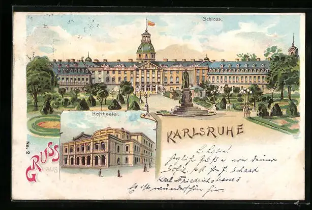 Lithographie Karlsruhe, Schloss, Hoftheater