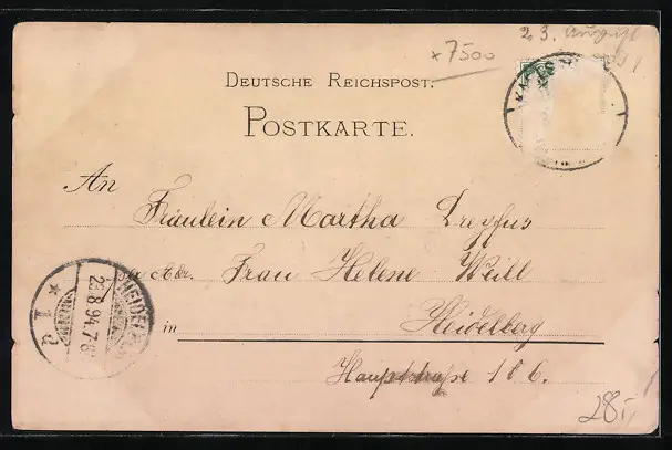 gelaufen 1894, Briefmarke entfernt, guter Zustand