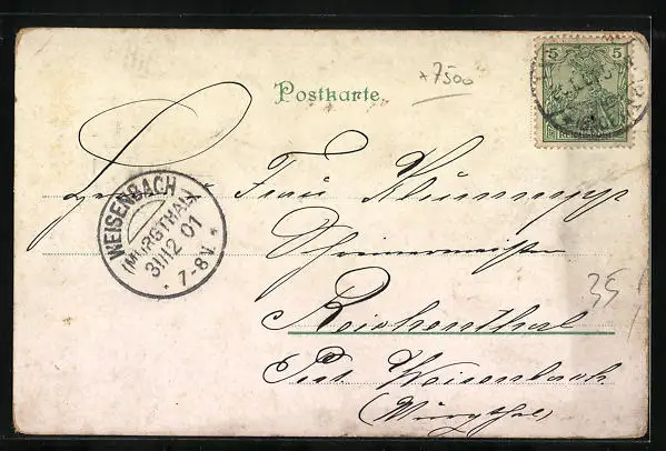gelaufen 1901, Ecken bestoßen, guter Zustand