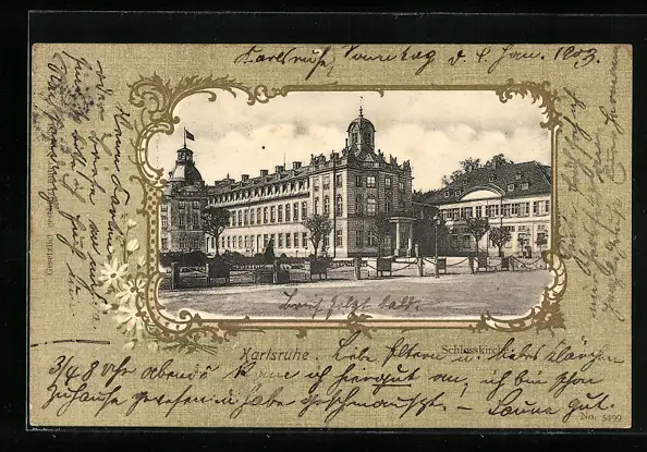 Lithographie Karlsruhe i. B., an der Schlosskirche