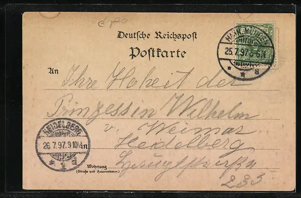 gelaufen 1897, Eckknicke re. unten, guter Zustand