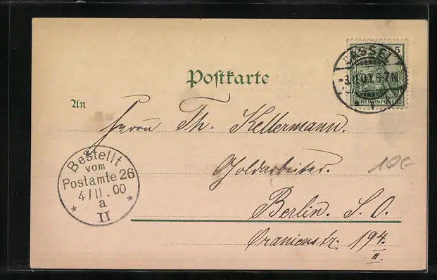 gelaufen 1900, minimaler Einriss li. oben, guter Zustand