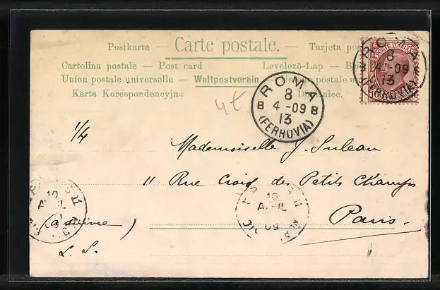 gelaufen 1913, Eckknick oben li., guter Zustand