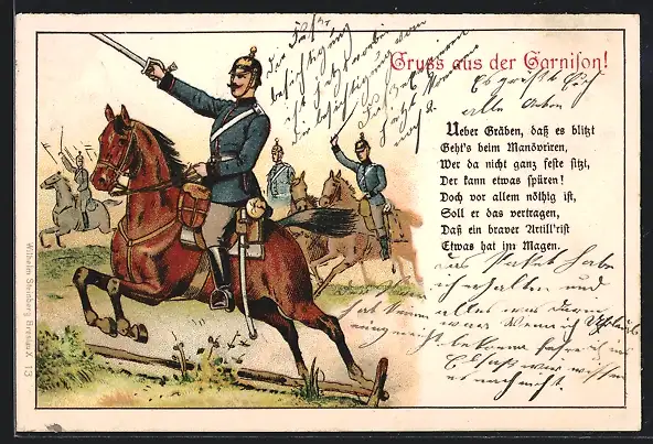 Lithographie Kavallerie reitet eine Attacke