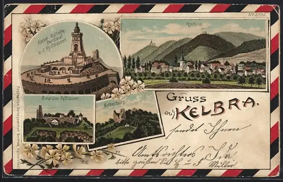Lithographie Kelbra, Ortsansicht, Burgruine Kyffhäuser, Rothenburg