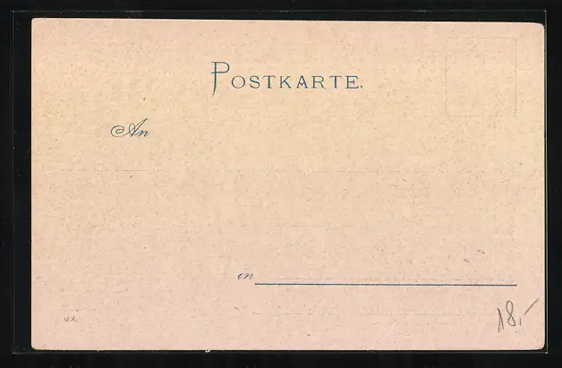 Personenbezogene Daten auf der Rückseite der Karte wurden durch blauen Textmarker unkenntlich gemacht. Die blauen Stellen sind auf die Vorderseite durchgeweicht und wirken sich negativ auf das Postkartenfoto aus