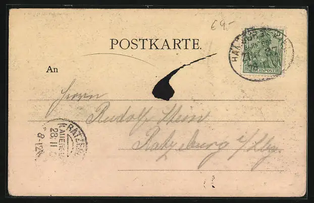 gelaufen 1901, rückseitig Klebe- und Papierreste, leicht fleckig, guter Zustand