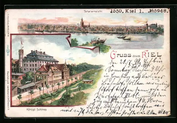 Lithographie Kiel, Königl. Schloss, Totalansicht