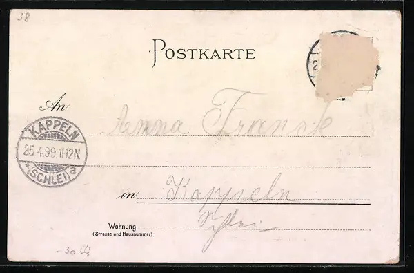 gelaufen 1899, Briefmarke entfernt, rückseitig Oberflächenschaden, guter Zustand