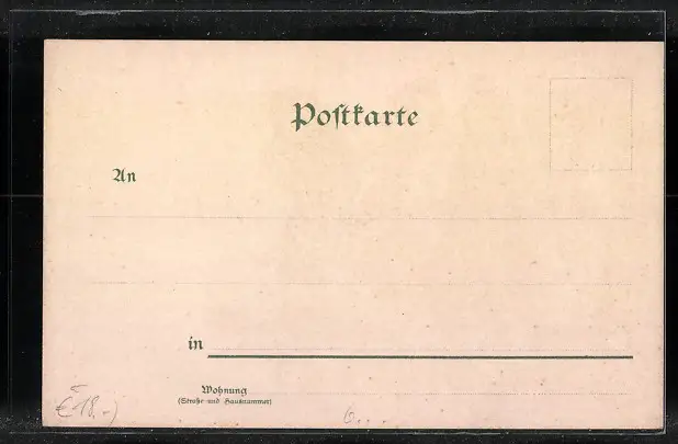 Personenbezogene Daten auf der Rückseite der Karte wurden durch blauen Textmarker unkenntlich gemacht. Die blauen Stellen sind auf die Vorderseite durchgeweicht und wirken sich negativ auf das Postkartenfoto aus
