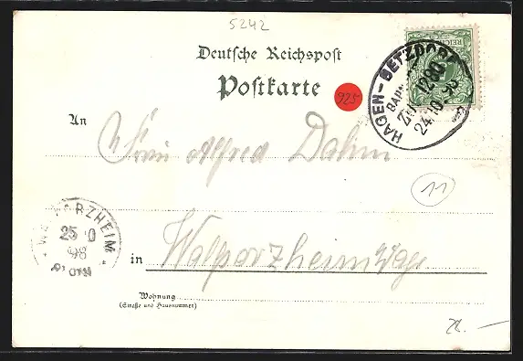 gelaufen 1898, rückseitig Klebe- und Papierreste, guter Zustand