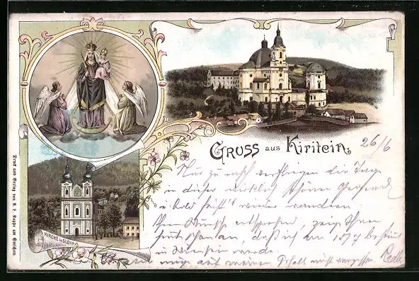 Lithographie Kiritein, Kirchen aus der Ferne, Gnadenmutter