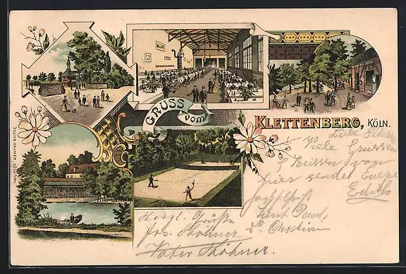 Lithographie Klettenberg bei Köln, Ausfulgslokal mit Tennsiplatz