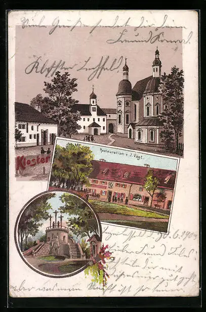 Lithographie Kloster Lechfeld, Kloster, Restauration Vogt
