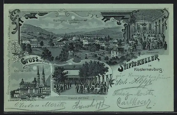 Lithographie Klosterneuburg, Ortsansicht mit Stiftskeller