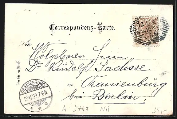 Personenbezogene Daten auf der Rückseite der Karte wurden durch blauen Textmarker unkenntlich gemacht. Die blauen Stellen sind auf die Vorderseite durchgeweicht und wirken sich negativ auf das Postkartenfoto aus