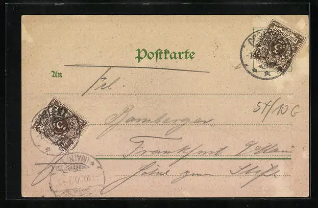 gelaufen 1900, Eckknick li. unten, Stempelspur, guter Zustand