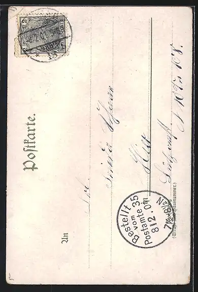 gelaufen 1901, Eckknick re. oben, Ecken bestoßen, guter Zustand