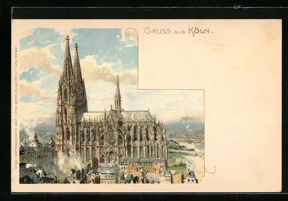 Lithographie Köln, Blick auf den Dom