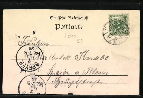gelaufen 1896, Einriss mittig unten, guter Zustand