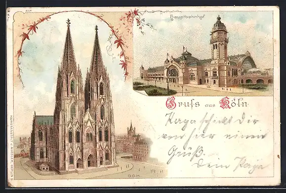 Lithographie Köln, Der Kölner Dom, Hauptbahnhof