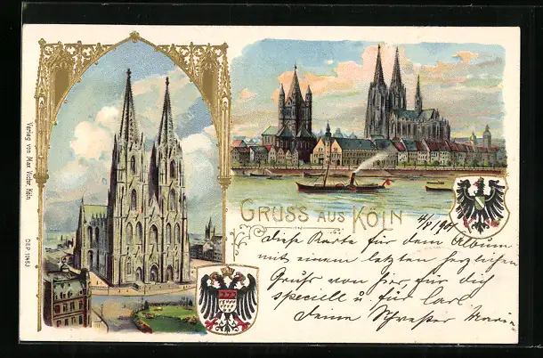 Lithographie Köln, Der Kölner Dom mit Rheinpartie
