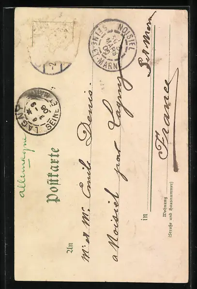 gelaufen 1906, Briefmarke entfernt, rückseitig Oberflächenschaden, Stempelspur, guter Zustand