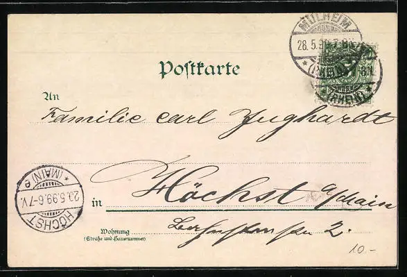 gelaufen 1899, Bugspur oben re. und oben mittig, guter Zustand