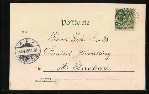 gelaufen 1899, guter Zustand