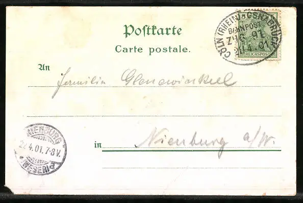 gelaufen 1901, Eckschaden re. unten, guter Zustand