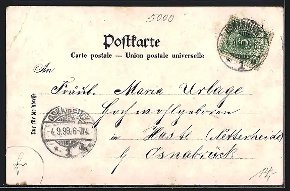 gelaufen 1899, Eckknick oben re., guter Zustand