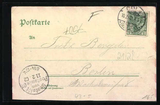 gelaufen 1902, Eckknick re. oben, Karte unten beschnitten, guter Zustand