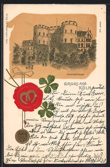 Lithographie Köln, Hahnentor, Siegel mit Kleeblättern