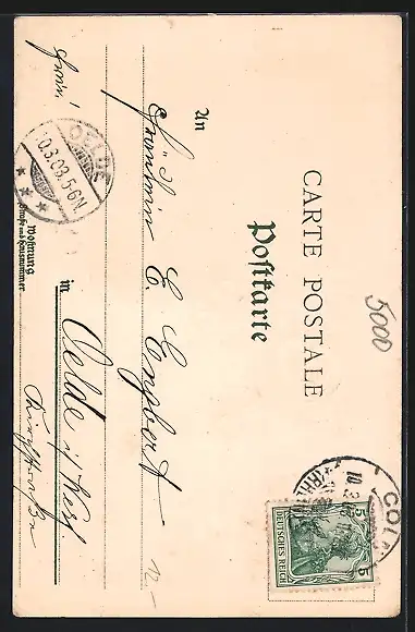 gelaufen 1903, Eckknick re. unten, guter Zustand