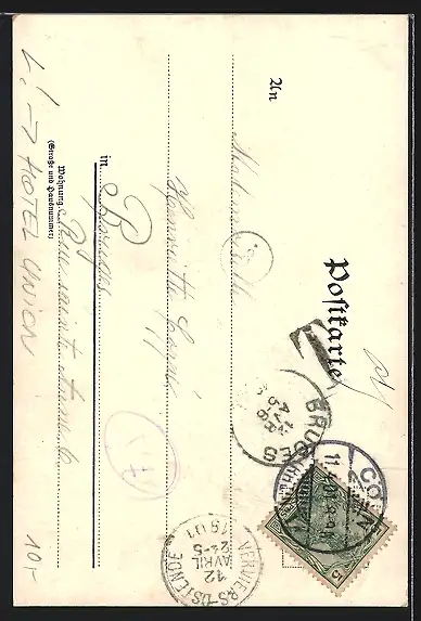 Lithographie Köln, Hotel Union, Dom und Wappen
