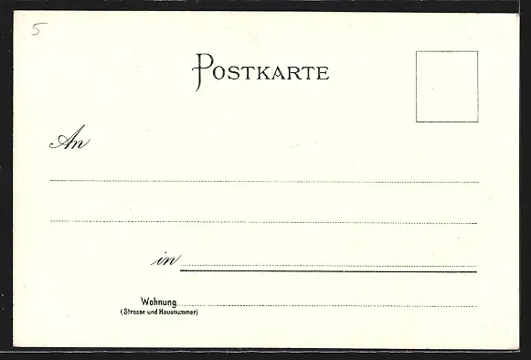 Personenbezogene Daten auf der Rückseite der Karte wurden durch blauen Textmarker unkenntlich gemacht. Die blauen Stellen sind auf die Vorderseite durchgeweicht und wirken sich negativ auf das Postkartenfoto aus