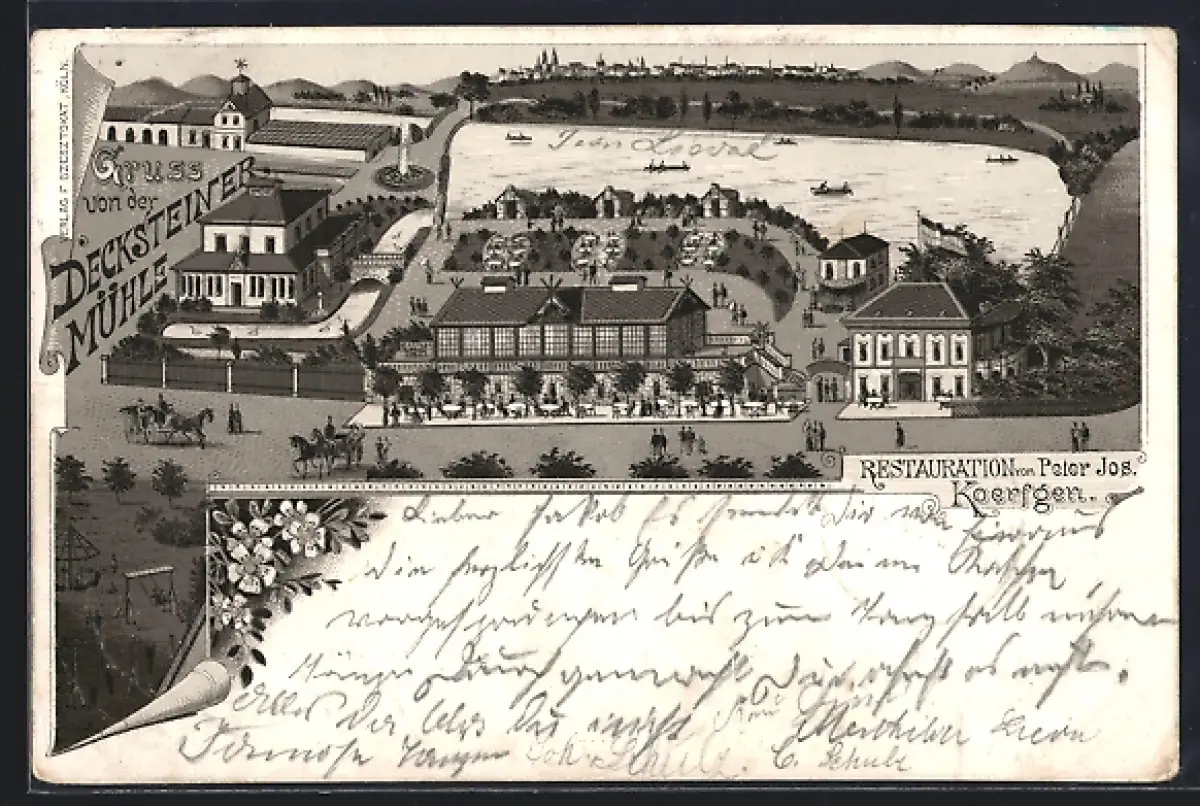 Lithographie Köln-Lindenthal, Restaurant Decksteiner Mühle von Peter Jos. Koerfgen