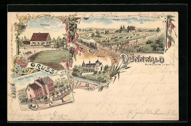 Lithographie Köln-Mülheim, Gasthaus Förstchen, Neue Schule