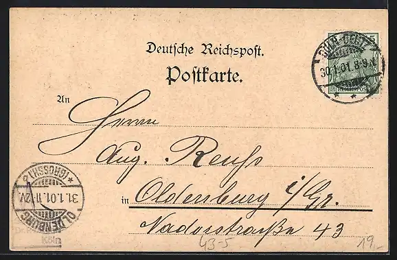 gelaufen 1901, Eckknick li. oben, guter Zustand